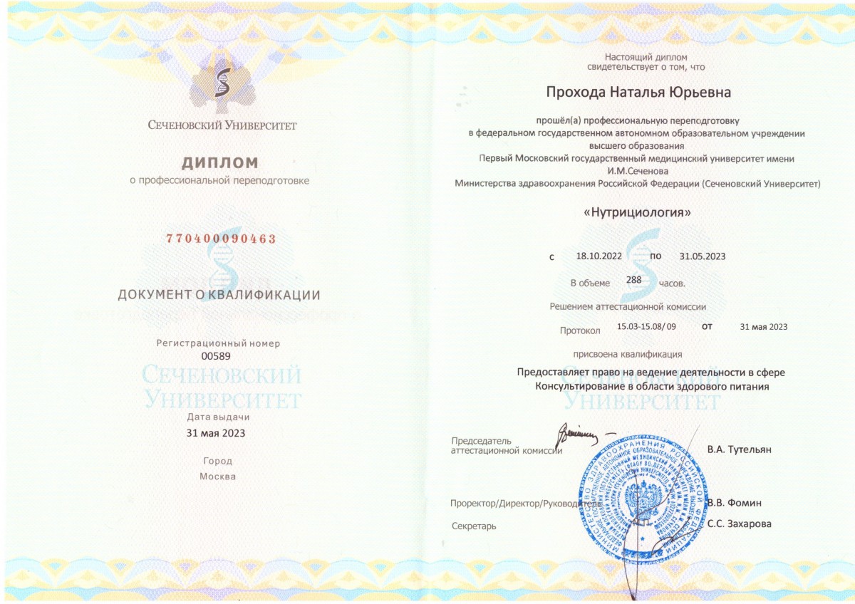 Первый Московский государственный медицинский университет имени И.М.Сеченова «Нутрициология»